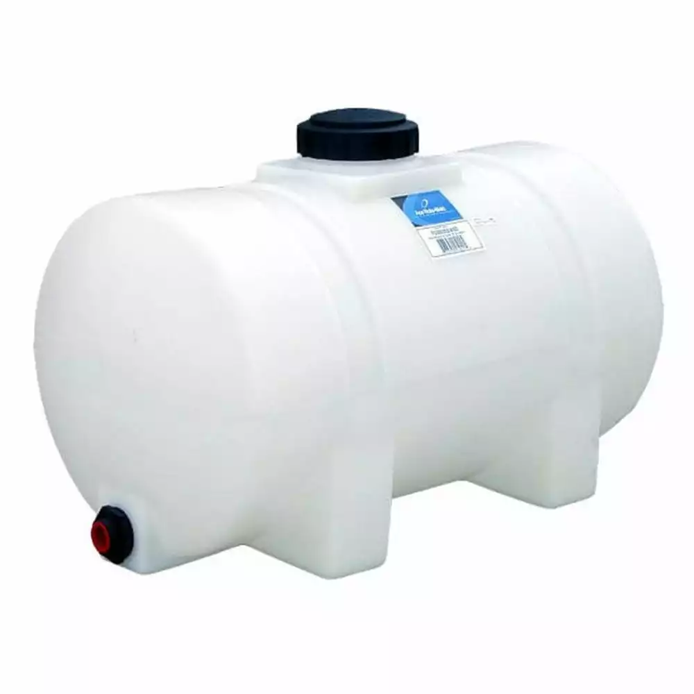 This plastic horizontal leg tank is constructed with rotationally molded polyethylene resin. It’s seamless construction makes it durable and resistant to cracks, chips, and ruptures. The poly tank was made with FDA approved resin that complies with FDA standards 21 CFR 177.1520 (1) 3.1 and 3.2 for the storage of potable water. It’s made with UV inhibitors that help protect liquid contents from direct sunlight – making it ideal for both indoor and outdoor use. This white horizontal tank is transparent for conveniently identifying liquid levels. It has gallon indicators located on the outside of the tank.