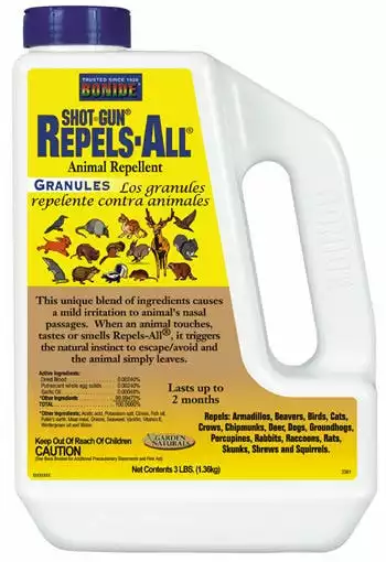 A convenient granular formulation of our all natural- and popular Repels All liquid. Triggers genetically and biologically ingrained fear and flight responses in a multitude of animal intruders – without harm. Lasts up to 2 months. Protects plants and pro.