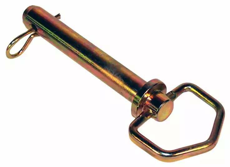 - Forged head hitch pin with swivel handle and zinc plated “R” clip pin