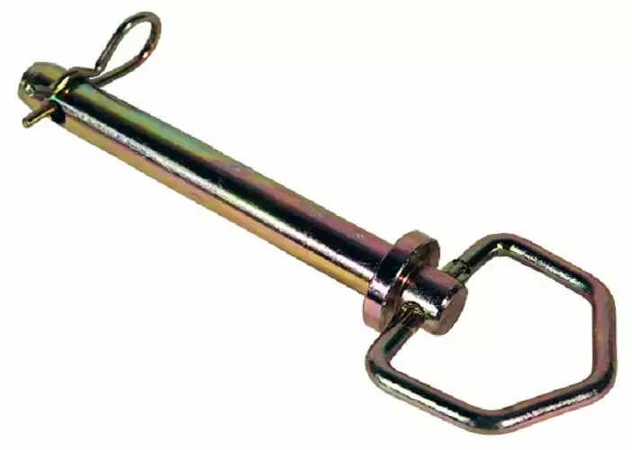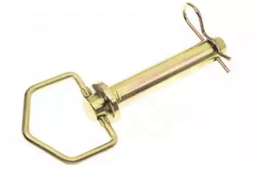 - Forged head hitch pin with swivel handle and zinc plated “R” clip pin