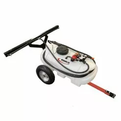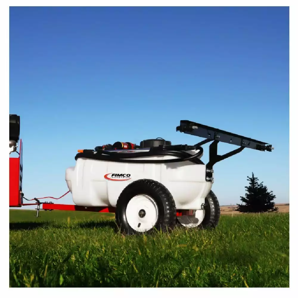 The FIMCO 15 Gallon Value Trailer Sprayer with 1.2 GPM Pump and 2 Nozzle Boom is designed for the homeowner needing an economical high performance sprayer. The UV resistant, molded polymer tank has a 5 inch tethered lid for easy access and is completely drainable. This model features the High Flo High Performance 1.2 GPM. Â The Lever Handgun distributes up to 20 feet of horizontal spray, 12 feet of vertical spray and comes with 15 feet of 3/8 inch hose. The 2 Nozzle boom offers 7 feet of total spray coverage with FloodJet tips for less wind drift and no drip check valves. This sprayer is ideal for small pastures and rural properties.