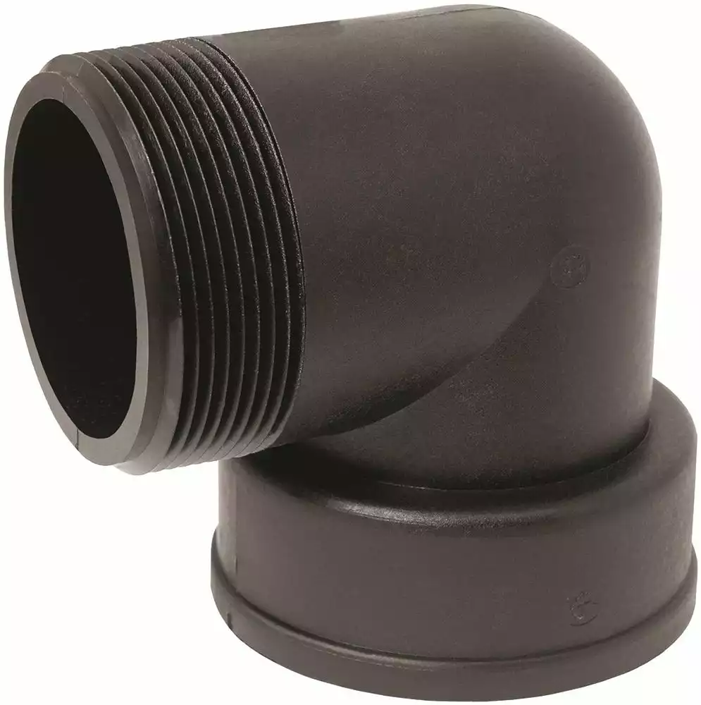 Used in fluid plumbing applications to connect a female NPT fiting and male NPT fitting at 90 degrees.