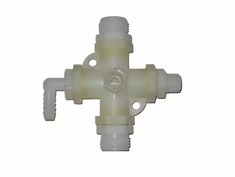 - Manifold to connect to 12v sprayer pumps with 3/8″ NPT ports