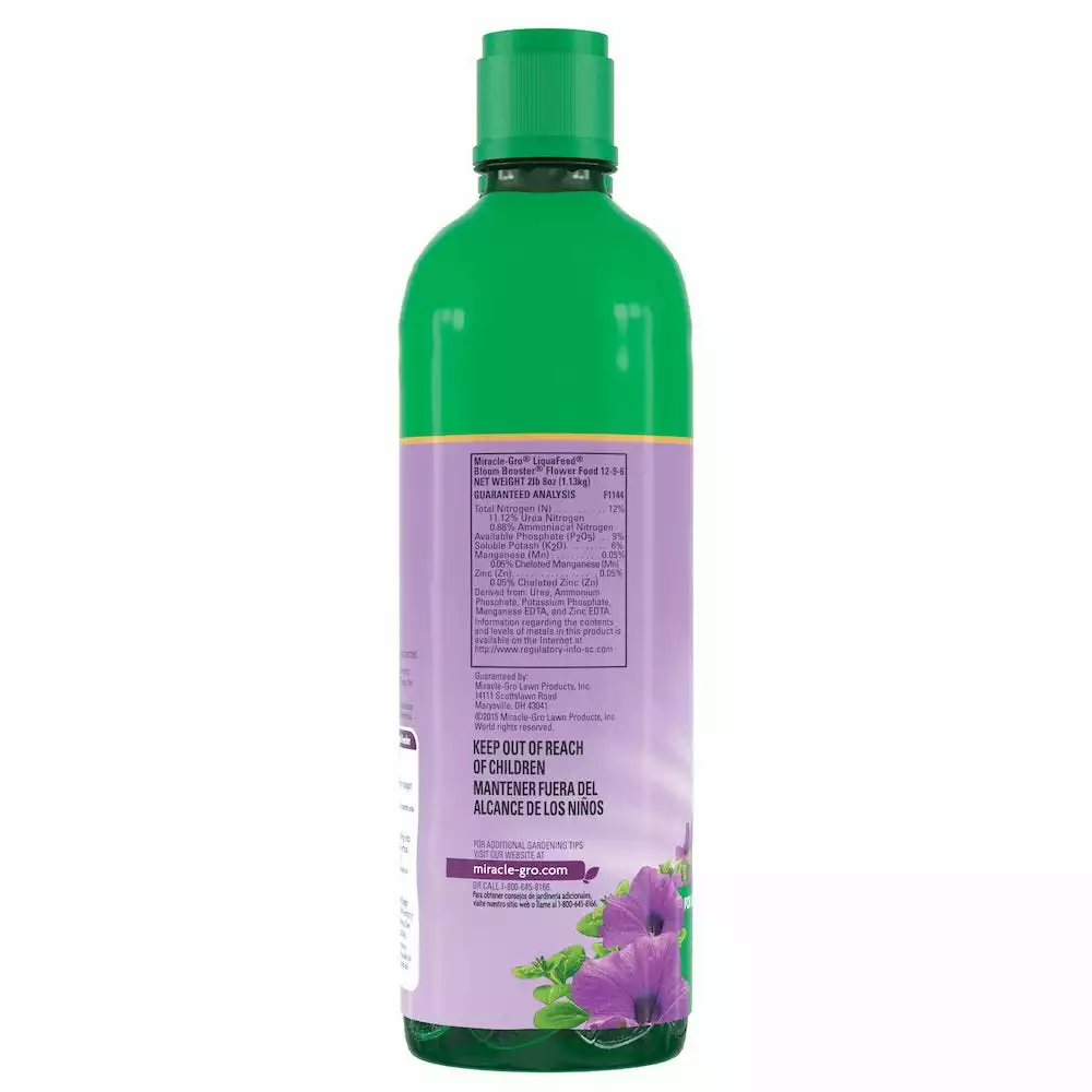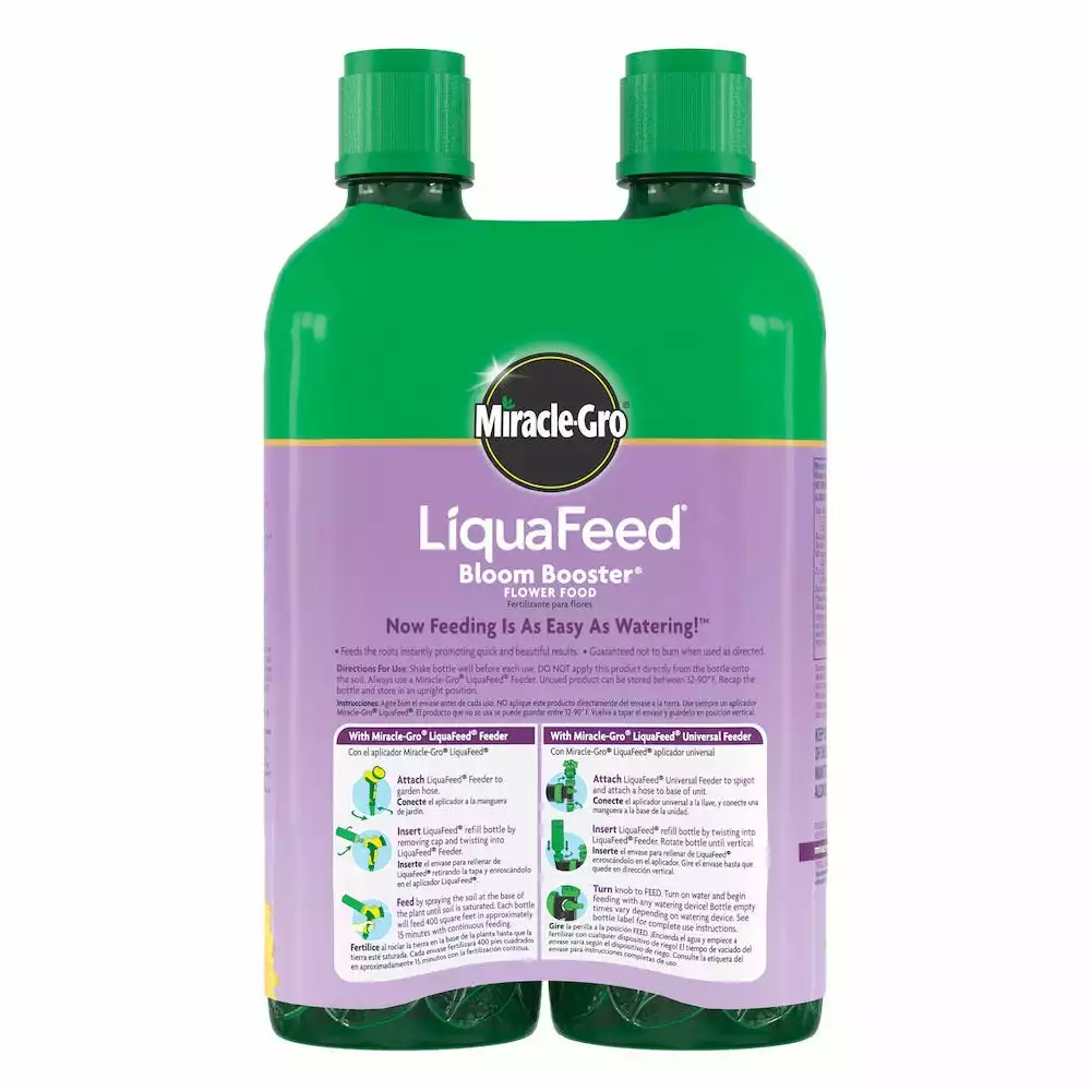Miracle-Gro LiquaFeed Bloom Booster Flower Food promotes more blooms for greater color compared to unfed plants. Feeding is as easy as watering. Just use a Miracle-Gro LiquaFeed Feeder and apply to your plants every 1-2 weeks.