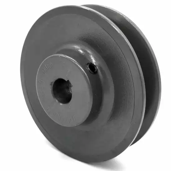 This V-Groove Drive Pulley is for use as a general purpose pulley for power transmission such as compressors, industrial fans, lawnmowers, snow blowers and electrical motors. It has a hub attached and the inside diameter is 5/8”. There are no set screw holes. This part is powder coated for long-term rust prevention.