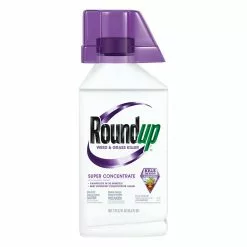 Great value for large areas, Roundup brand products help you triumph over the toughest weeds. Roundup Super Concentrate Weed & Grass Killer kills over 200 types of weeds (as listed) and now features an easy measure cap that helps measure the desired amount of product. Concentrated for extra value, Roundup Super Concentrate Weed & Grass Killer is perfect for use around shrubs and trees, on patios, walkways, driveways, gravel areas and mulch, and along fences and foundations. It is also ideal for large projects, including lawn replacements or garden plot preparation. For best results, add 2.5 fl. oz. of the concentrate to 1 gallon of water. Use of a Roundup brand sprayer is recommended. Roundup Super Concentrate Weed & Grass Killer is rainproof in 30 minutes, and begins working on contact with visible results as fast as 2-4 days. This concentrated formula kills the root so weeds don’t come back. No root. No weed. No problem.