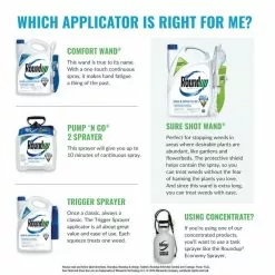 - Use easy measure cap and apply with a Roundup brand tank sprayer