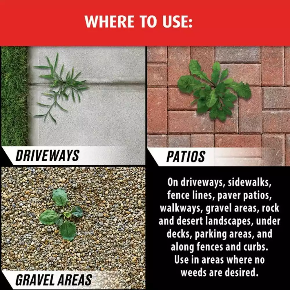 - Apply with a tank sprayer to driveways, sidewalks, gravel areas, rock and desert landscapes, under decks, on parking areas, and along fences and curbs (packaging may vary)