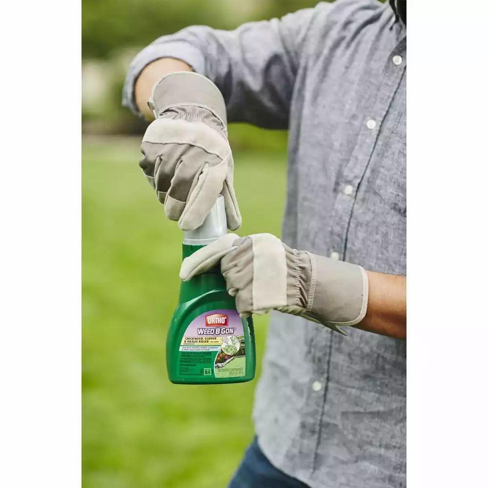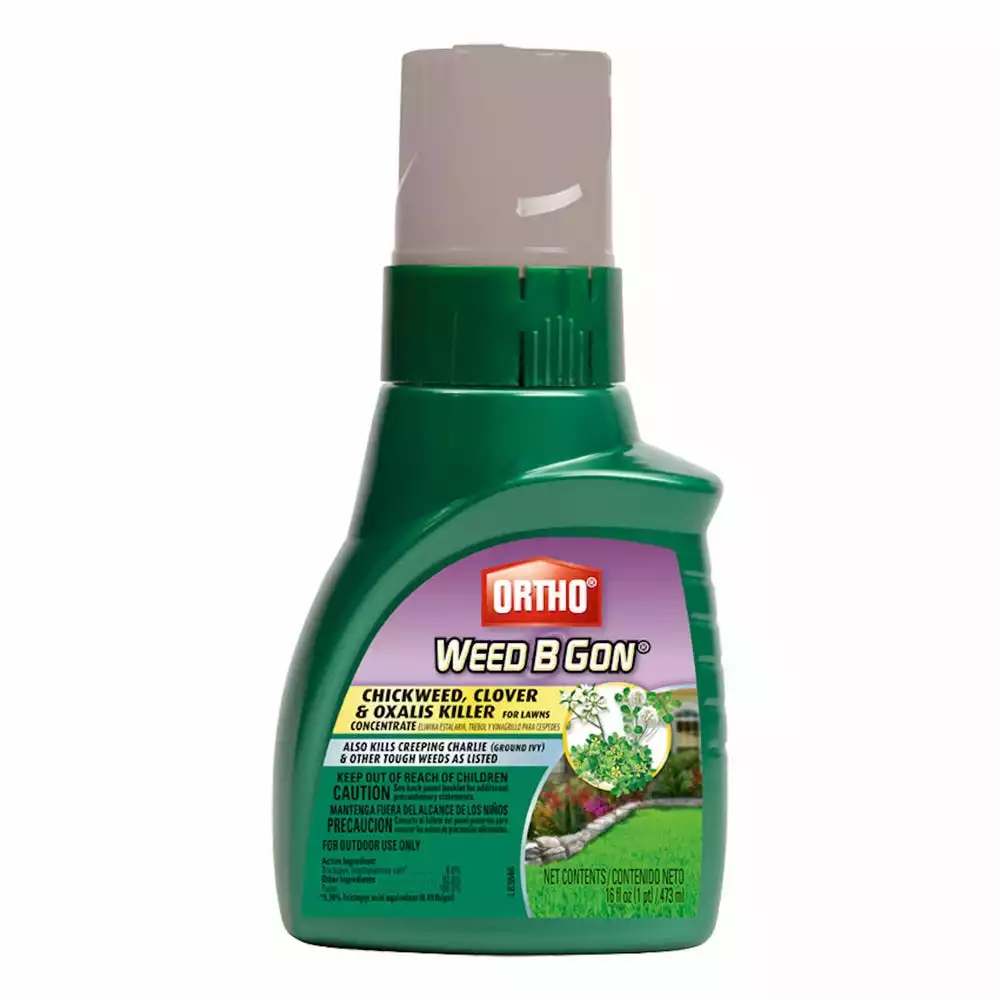 Are you tired of unsightly weeds creeping into your lawn? Ortho Weed B Gon Chickweed, Clover & Oxalis Killer for Lawns Concentrate is formulated to kill tough weeds in your lawn. The formula kills Ground Ivy (Creeping Charlie), Speedwell (Veronica), Wild Violet and other tough lawn weeds as listed. The concentrate may be applied with the Ortho Dial ‘N Spray Hose-End Sprayer or any other tank sprayer. Trust Ortho Weed B Gon to kill weeds, not your lawn.